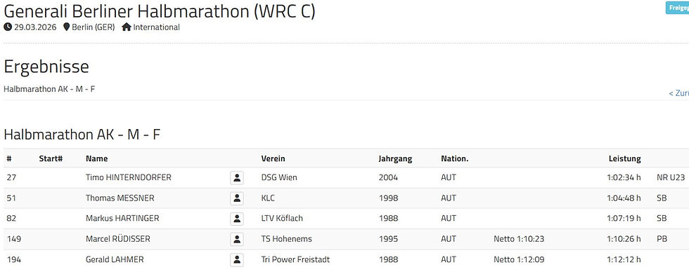 Generali Halbmarathon - BERLIN 29.03.2026 Thomas Messner im Spitzenfeld!